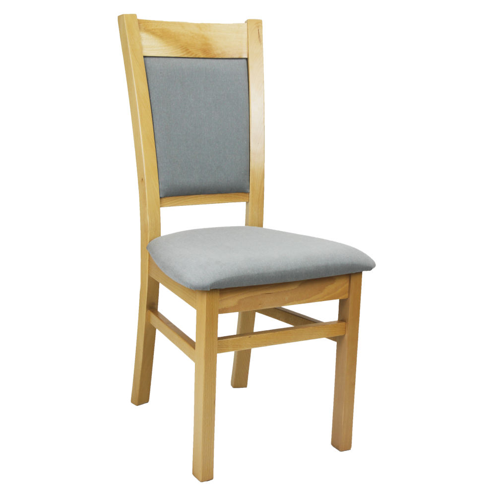 Krzesło bukowe z tapicerowanym siedziskiem i oparciem.