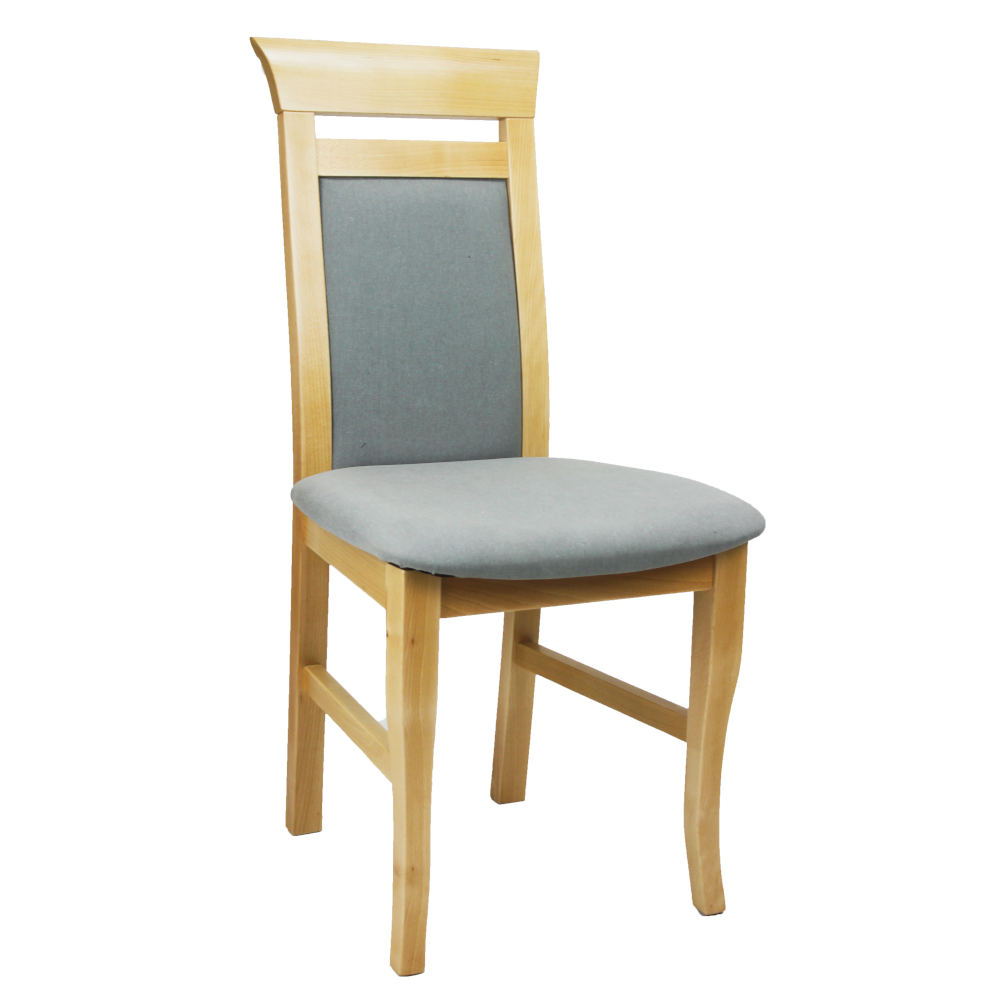 Krzesło bukowe z tapicerowanym siedziskiem i oparciem.