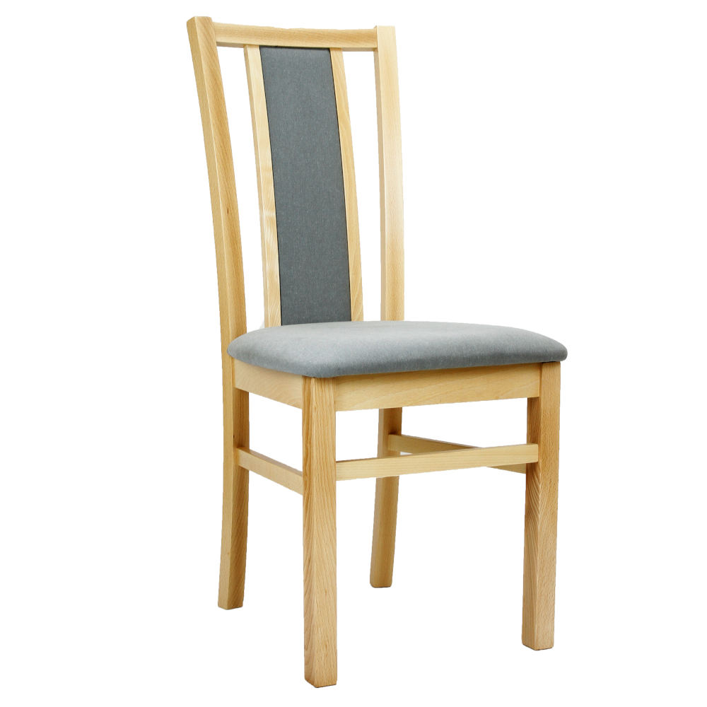 Krzesło bukowe z tapicerowanym siedziskiem.