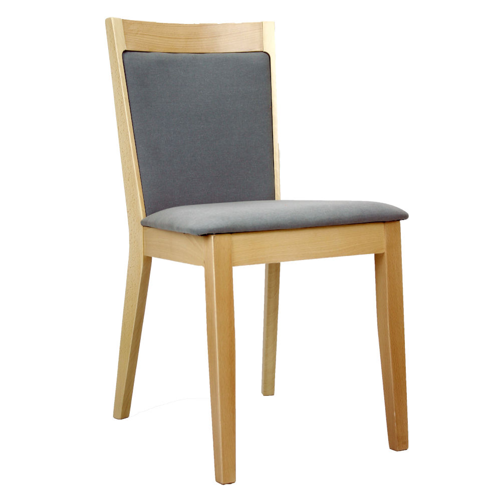 Krzesło bukowe z tapicerowanym siedziskiem i oparciem.