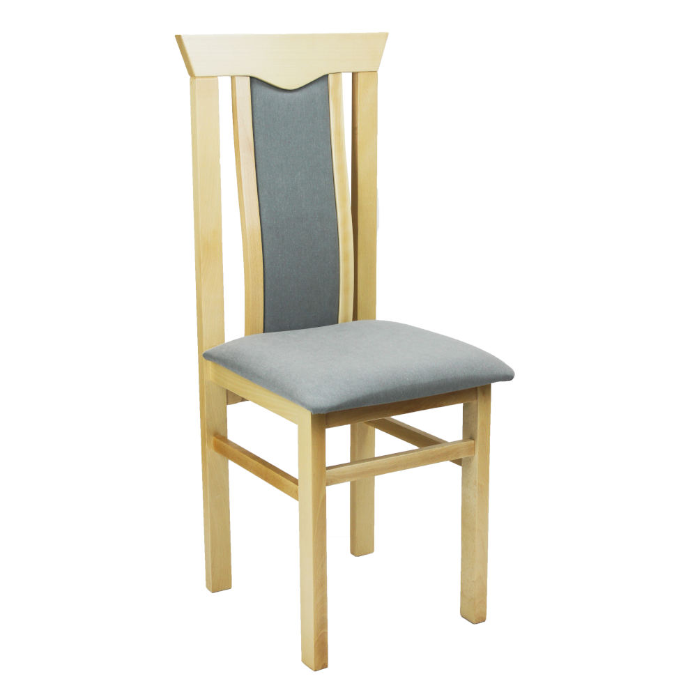 Krzesło bukowe z tapicerowanym siedziskiem i oparciem.