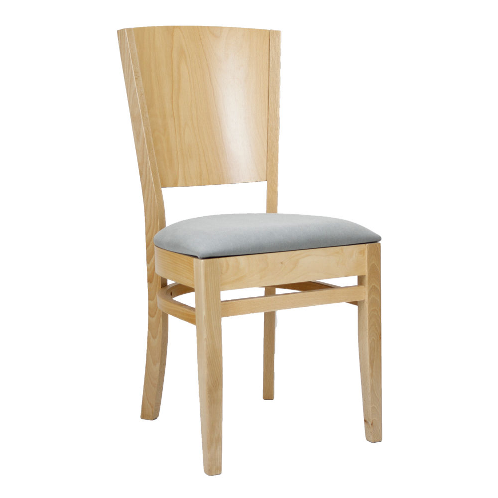 Krzesło bukowe z tapicerowanym siedziskiem.