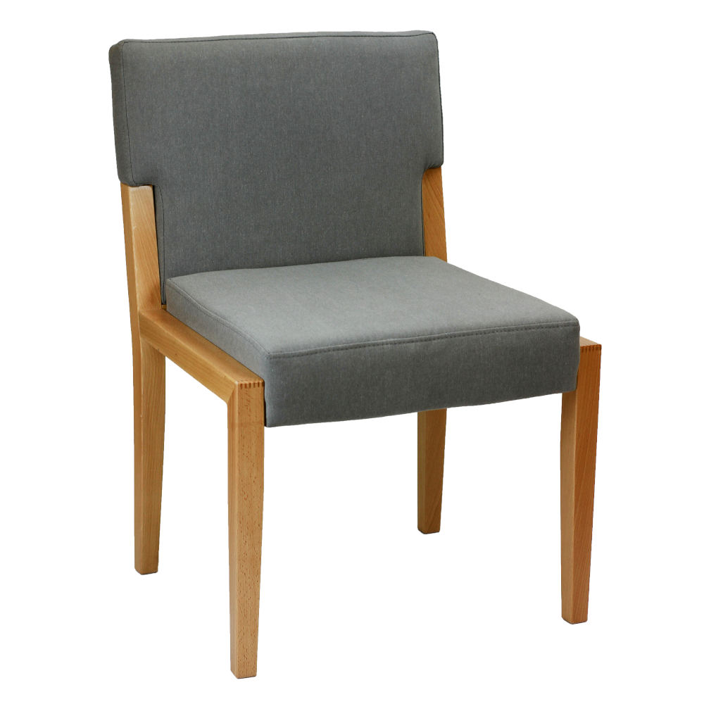 Krzesło bukowe z tapicerowanym siedziskiem i oparciem.