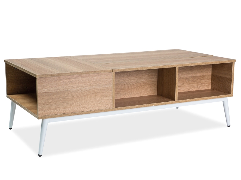Ława, blat:MDF, stelaż: metal, kolor: dąb + biały.