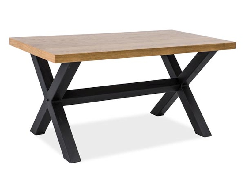Ława, blat: okleina naturalna, kolor: dąb, stelaż: metal, kolor: czarny.