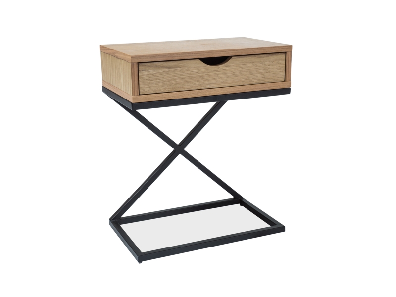 Stolik z szufladą, blat: MDF+okleina naturalna, stelaż: metal, kolor: dąb / czarny.