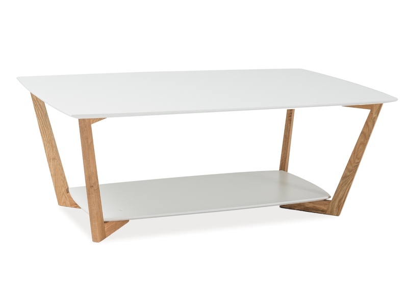 Ława, blat: MDF, kolor: biały, stelaż: drewno dębowe