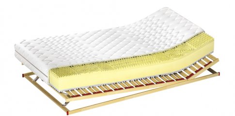 wkład: pianka wysokoelastyczna BIO Elastic o wysokości 12 cm. Wewnętrzny wkład obłożony jest z jednej strony 5 cm modelowaną pianką BIO Memory o właściwościach termoelastycznych, a z drugiej strony modelowaną pianką masującą BIO Standard o wysokości 3 cm.