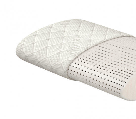 wkład: poduszki stanowi 100% naturalny lateks wykonany w technologii Talalay. Otwarta struktura lateksu umożliwia oddychanie i bardzo dobrą cyrkulację powietrza. Wkład lateksowy nie odkształca się z biegiem czasu.