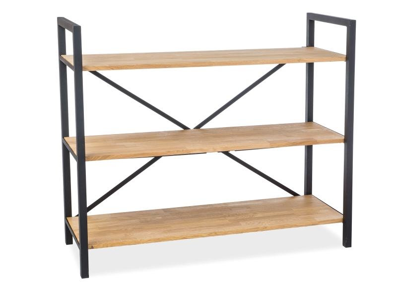 Regał, półki: okleina naturalna, stelaż: metal, kolor: dąb/czarny.