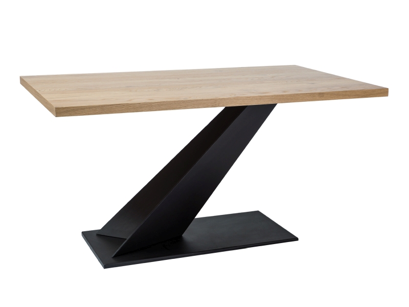 Stół, blat: okleina naturalna, stelaż: metal, kolor: dąb / czarny