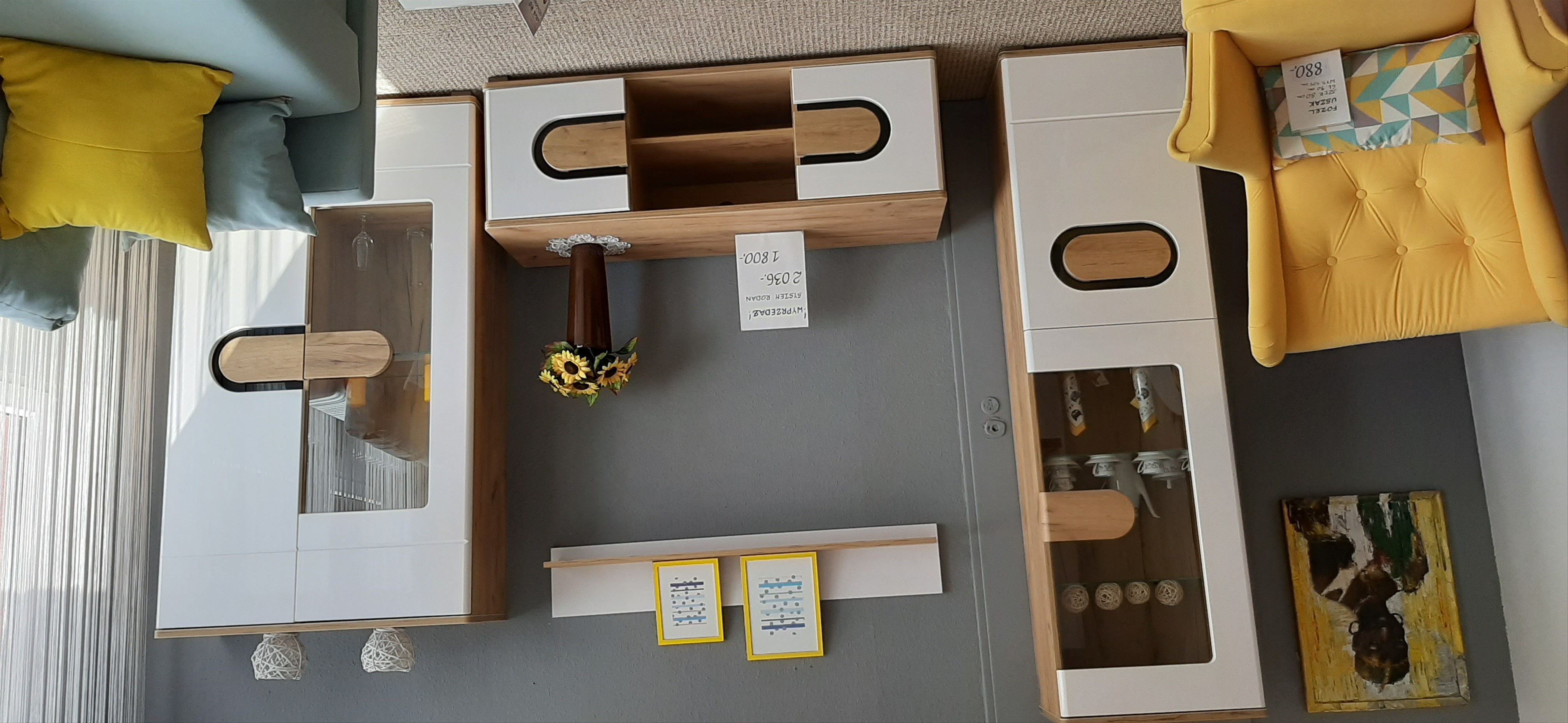 29.06.2021 System Rodan Witryna niska 90x159,5x37,5Szafka RTV 135x47,5x44,5Półka 120x21x20Witryna 54,5x195,5x37,5Cena2036,00zł 1800,00zł