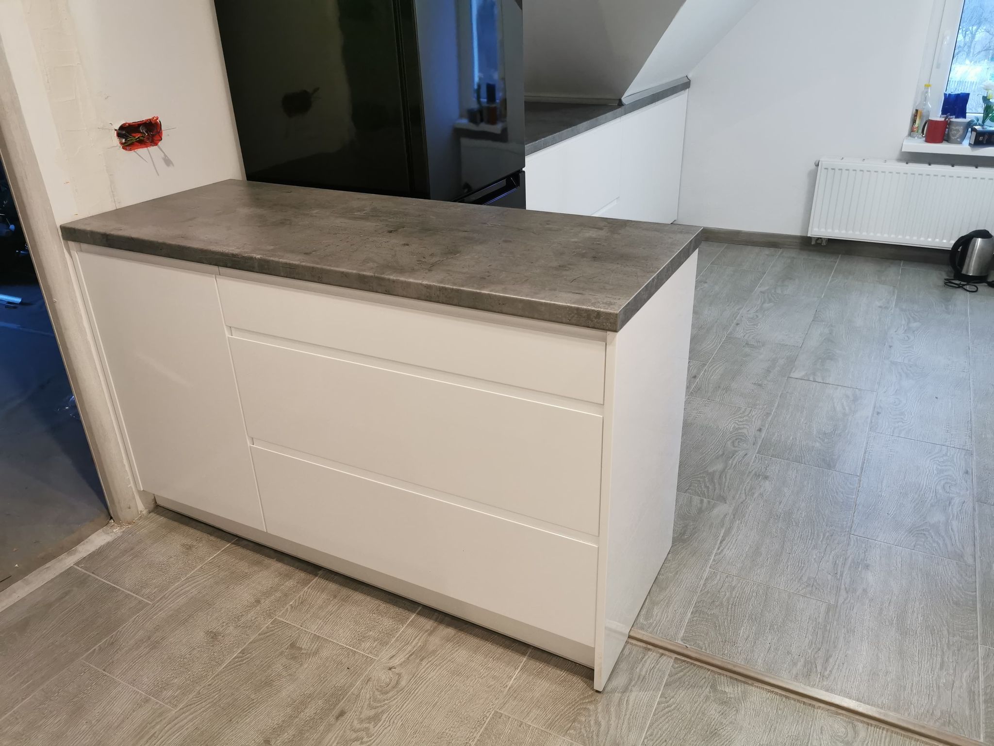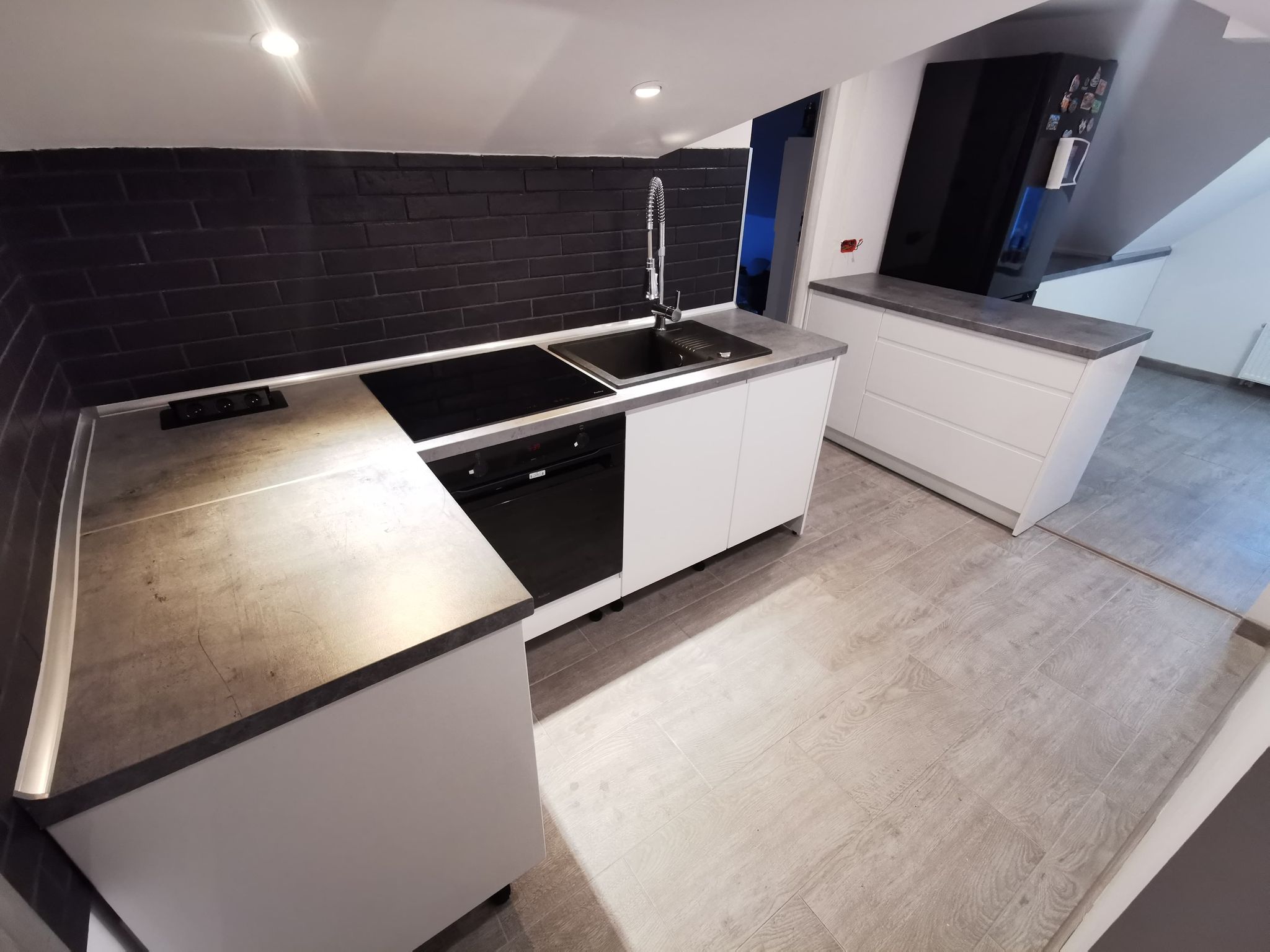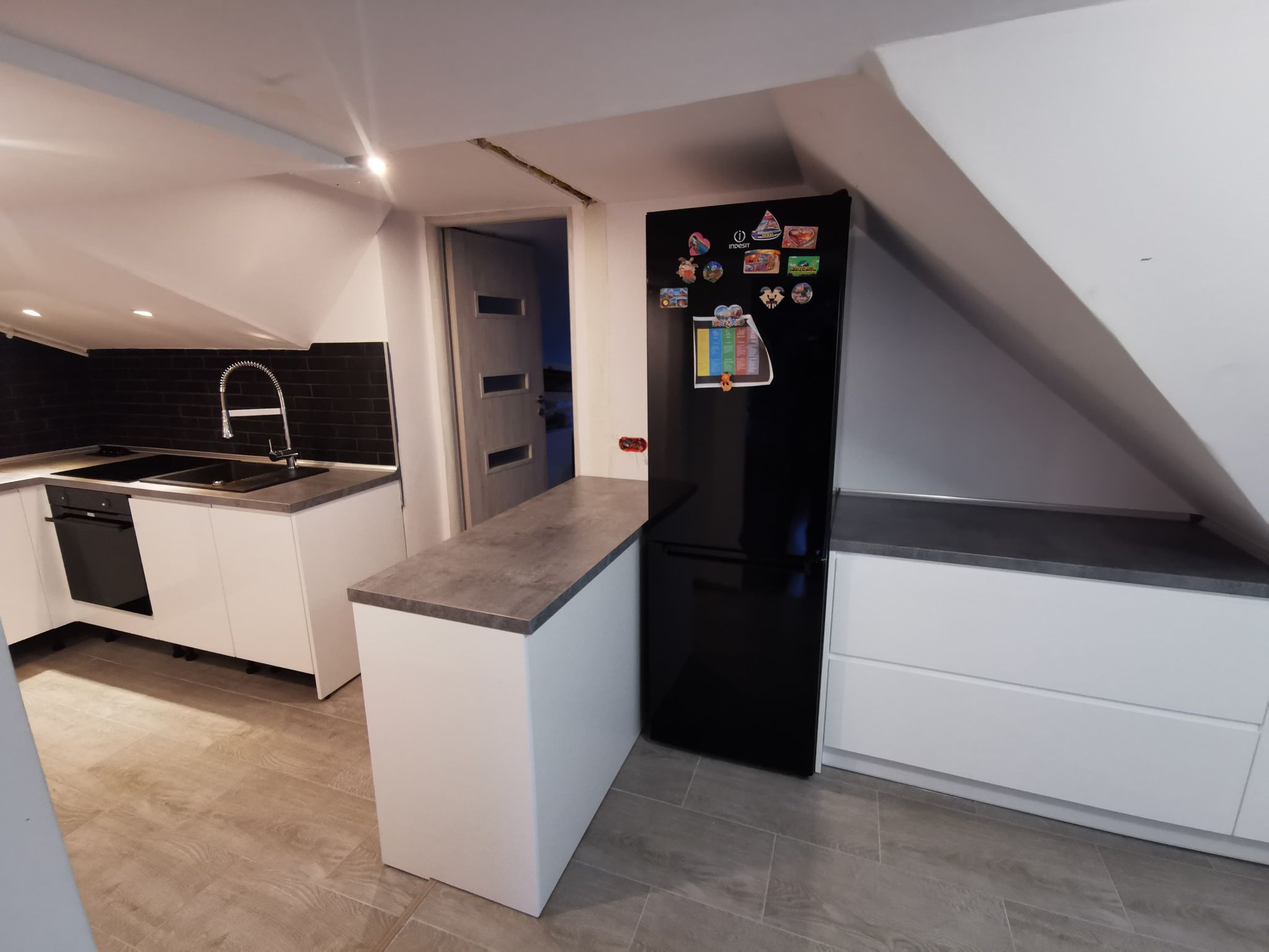 Jako salon realizujący głównie projekty indywidualne, projektowane pod indywidualnego klienta, możemy pochwalić się licznymi realizacjami, które wymagały od nas nietypowego podejścia. W wielu przypadkach są to niestandardowe pomieszczenia i ich wymiary. Nie jest inaczej w tym przypadku, gdzie w grę wchodziły bardzo trudne skosy, które znacząco ograniczały możliwości naszego projektanta. Miał on sporą zagwozdkę, związaną nie tylko z samymi skosami, ale także podzieleniem całej kuchni na dwie części. Dlaczego tak? W celu znalezienia odpowiedzi zachęcamy do wglądu w galerię realizacji, o której mowa.