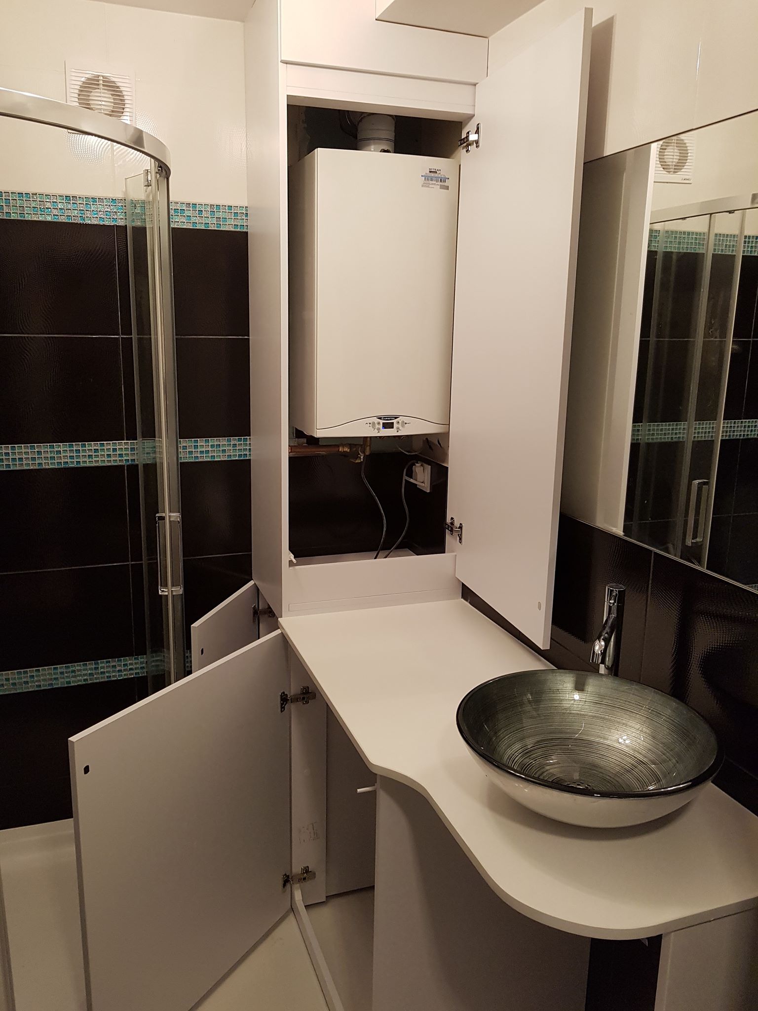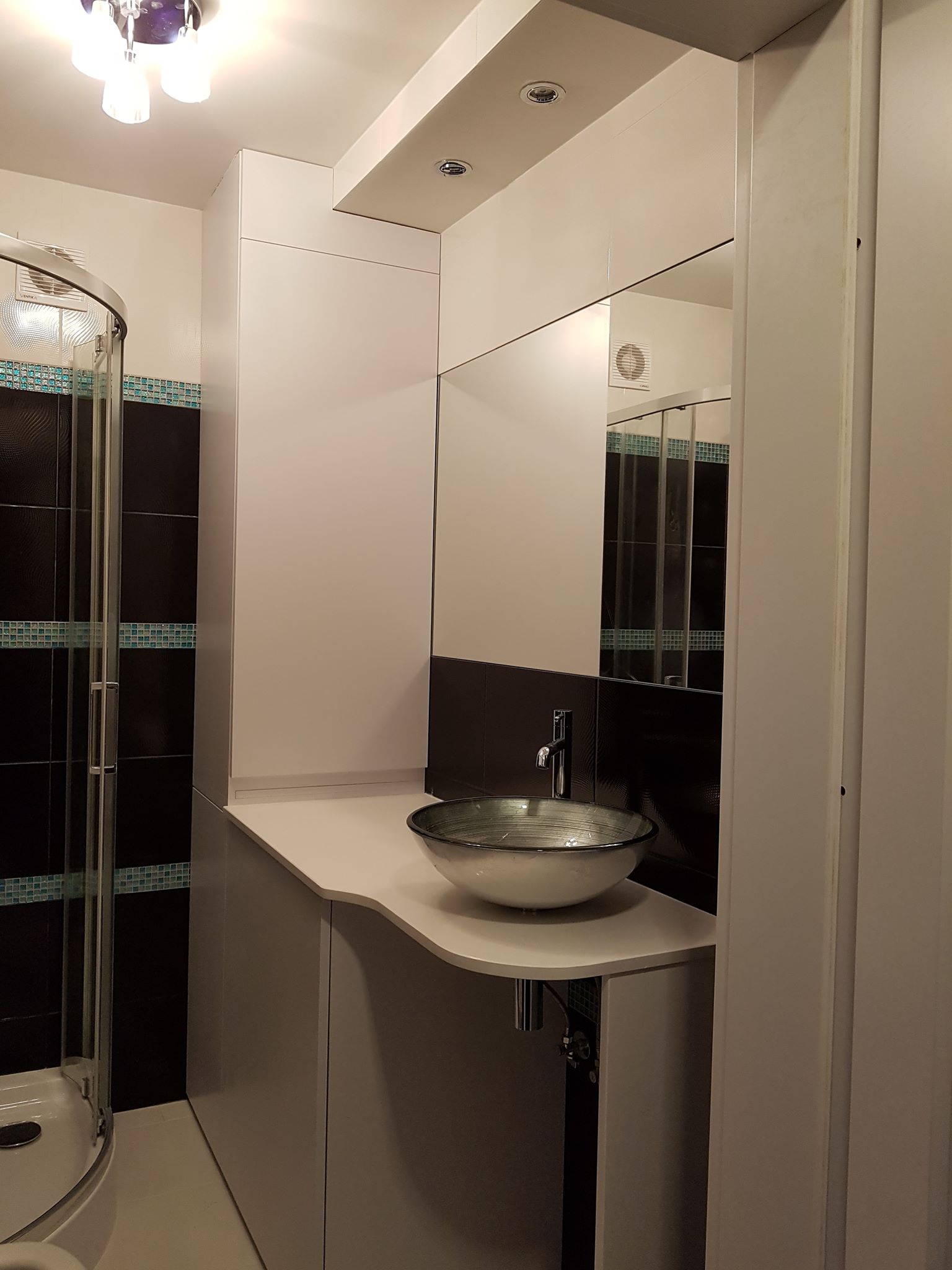 Kto z Państwa uważa że jeśli meble na wymiar to tylko kuchnia, salon czy pokój - jest w ogromnym błędzie. Kolejnym przykładem tego jest zabudowa wykonana przez nas w pomieszczeniu łączącym funkcję łazienki z WC. Nasza zabudowa w tym przypadku pełni nie tylko rolę organizacyjną miejsca do przechowywania rzeczy ale także estetyczną, dzięki której udało się zabudować w bezpieczny sposób elementy wskazane przez klienta.