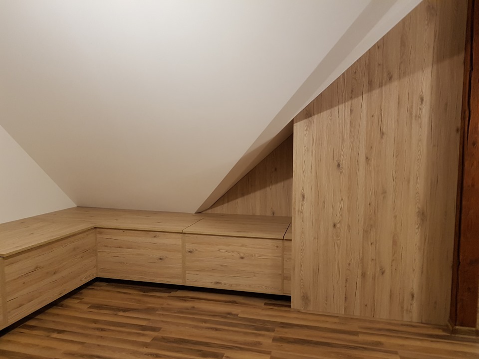 Brak możliwości montażu zwykłych mebli na poddaszu użytkowym czy w mieszkaniu ze skosami? To nie problem. Nawet skosy nie sa nam obce poczas gdy projektujemy i montujemy meble na wymiar w Jeleniej Górze i okolicach. Brak pomysłu? Pomożemy! Tymczasem zapraszamy do realizacji mebli przy jednym z kolejnych projektów.