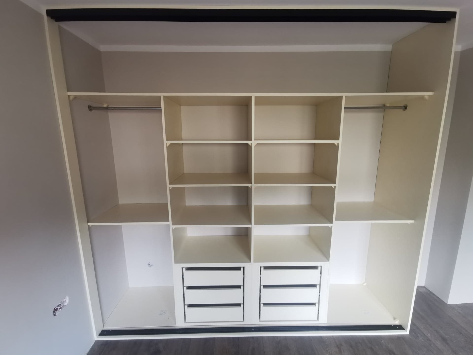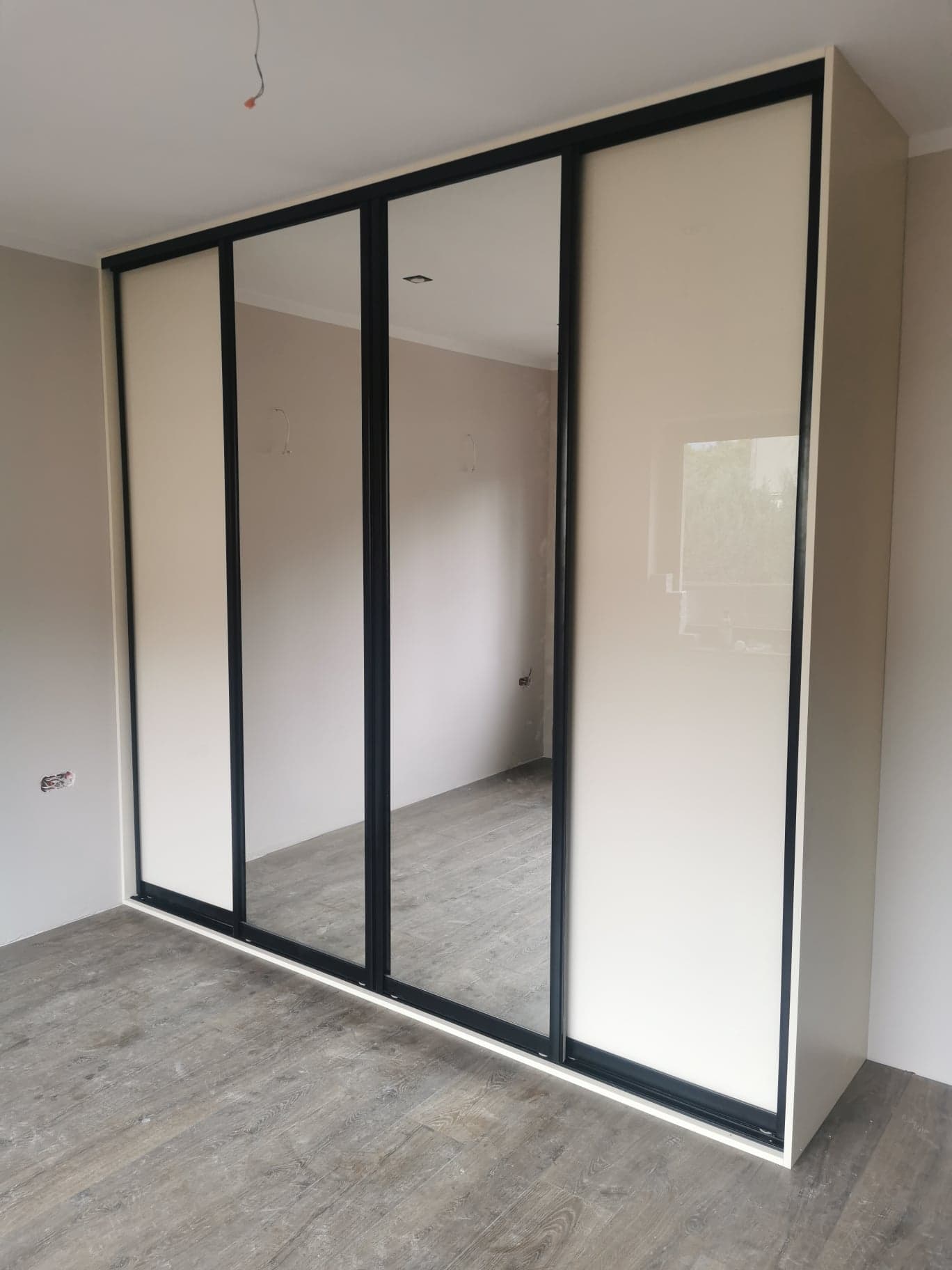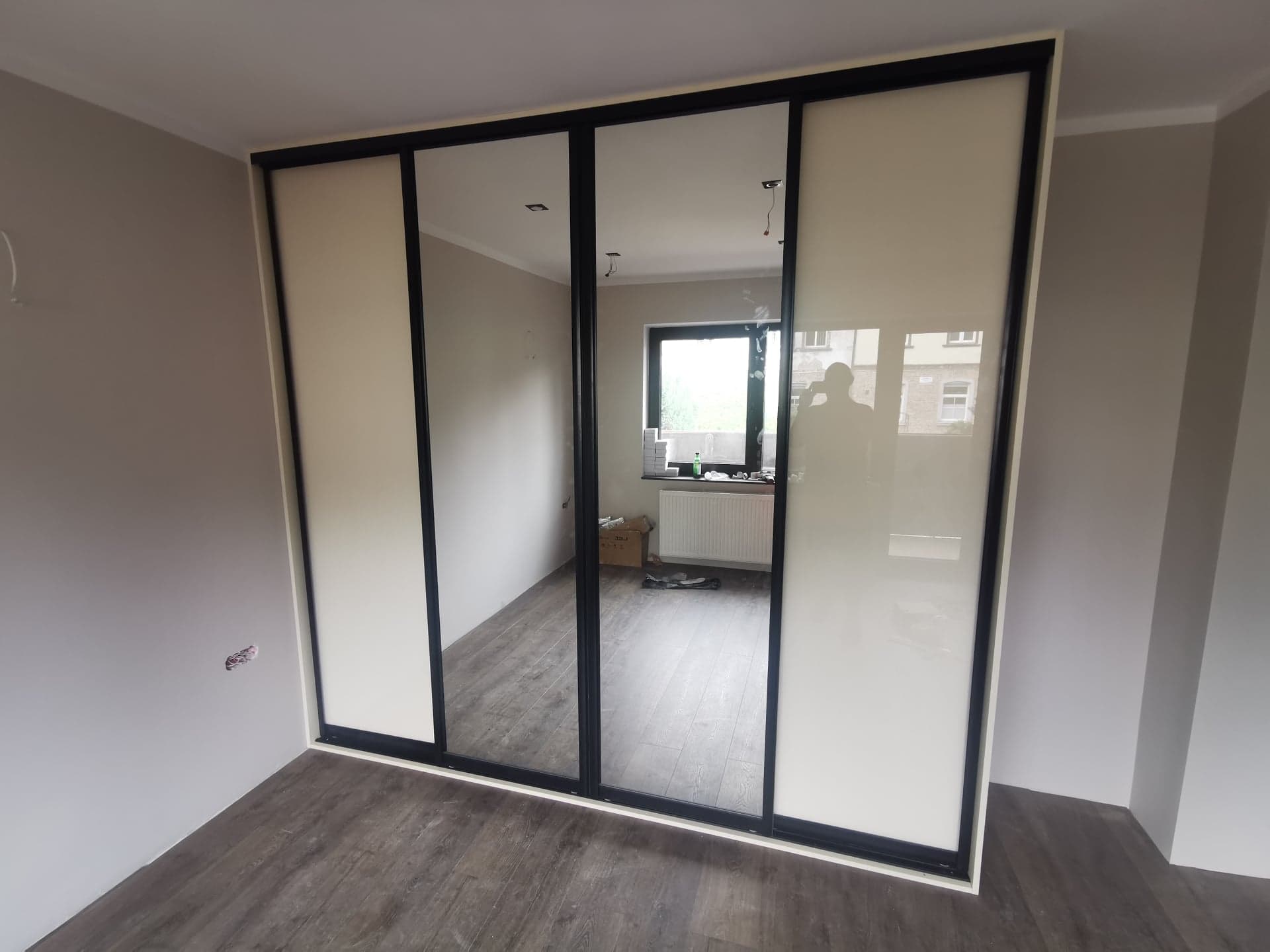 Tak jak wspomnieliśmy już na samym początku, meble na wymiar to nie tylko meble kuchenne. To także usługi realizacji zabudowy przestrzeni w formie chociażby szafy wnękowej. Dokładnie takiej szafy którą realizowaliśmy przy poniższym projekcie. Szafa wnękowa która na życzenie klienta została oklejona także dwoma lustrami, co pozwala na wizualne zwiększenie samego pomieszczenia. Dzięki czemu mogłoby się zdawać że szafa nie odbiera nam miejsca a sama szafa pozwala na minimalną zabudowę wnętrza samego pomieszczenia, celem zapewnienia szafki do przechowywania m.in. ubrań.