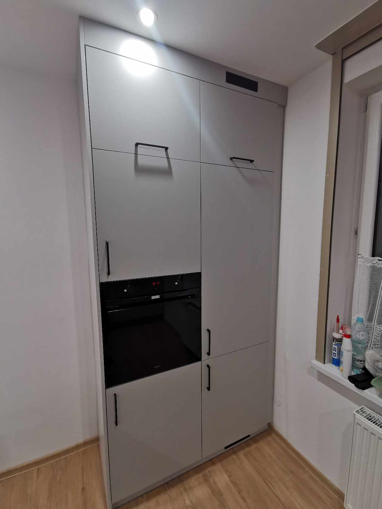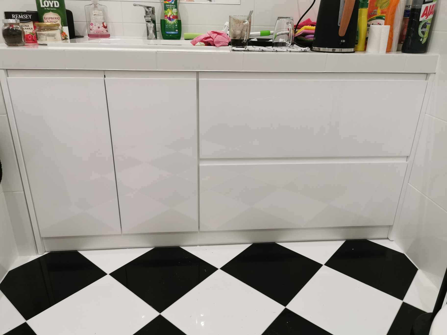 W małej galerii dotyczącej wspomnianej realizacji, znajdą Państwo także zabudowę małej wnęki łazienkowej, przy użyciu modnej bieli w błyszczącym wykończeniu.