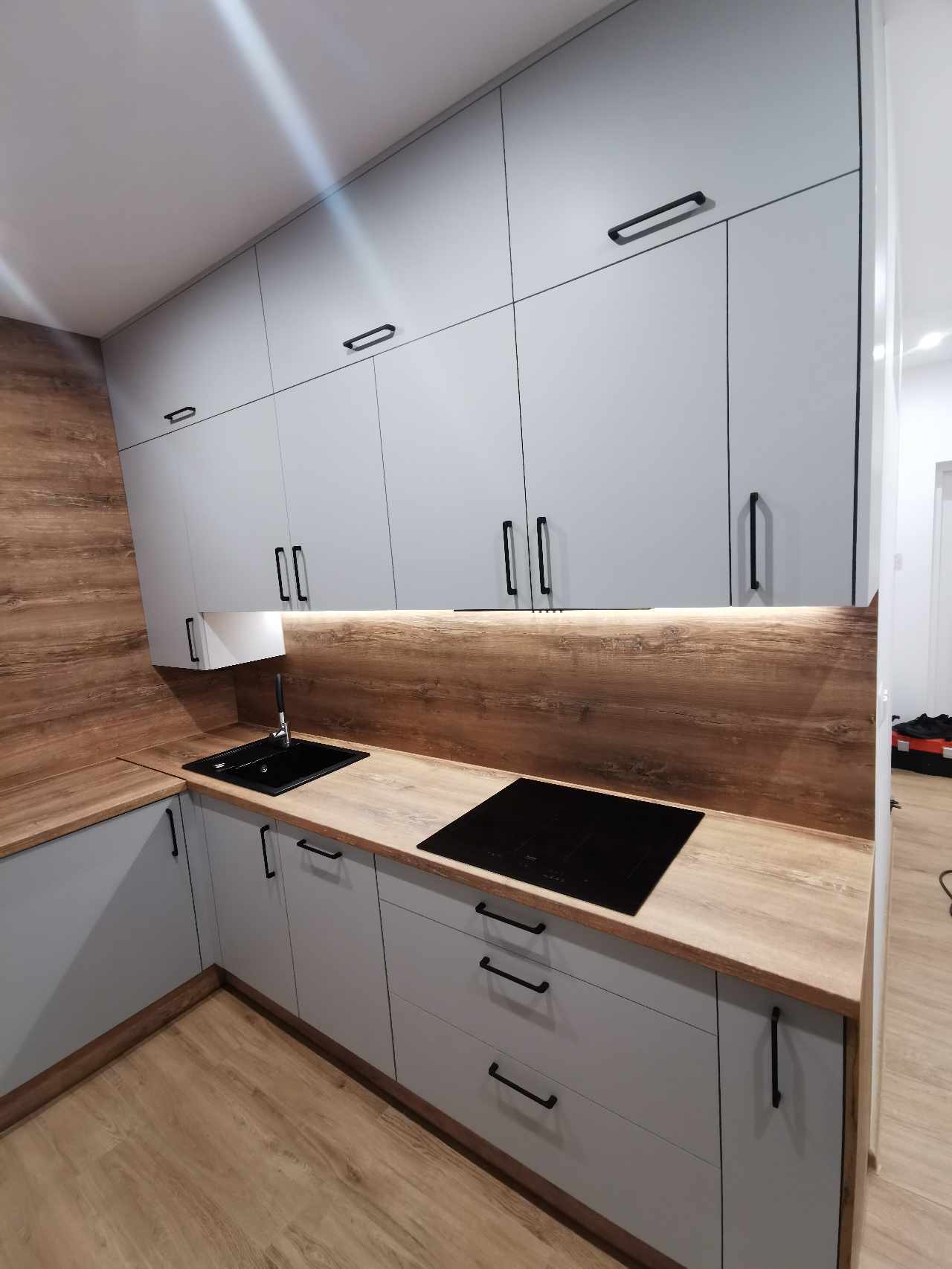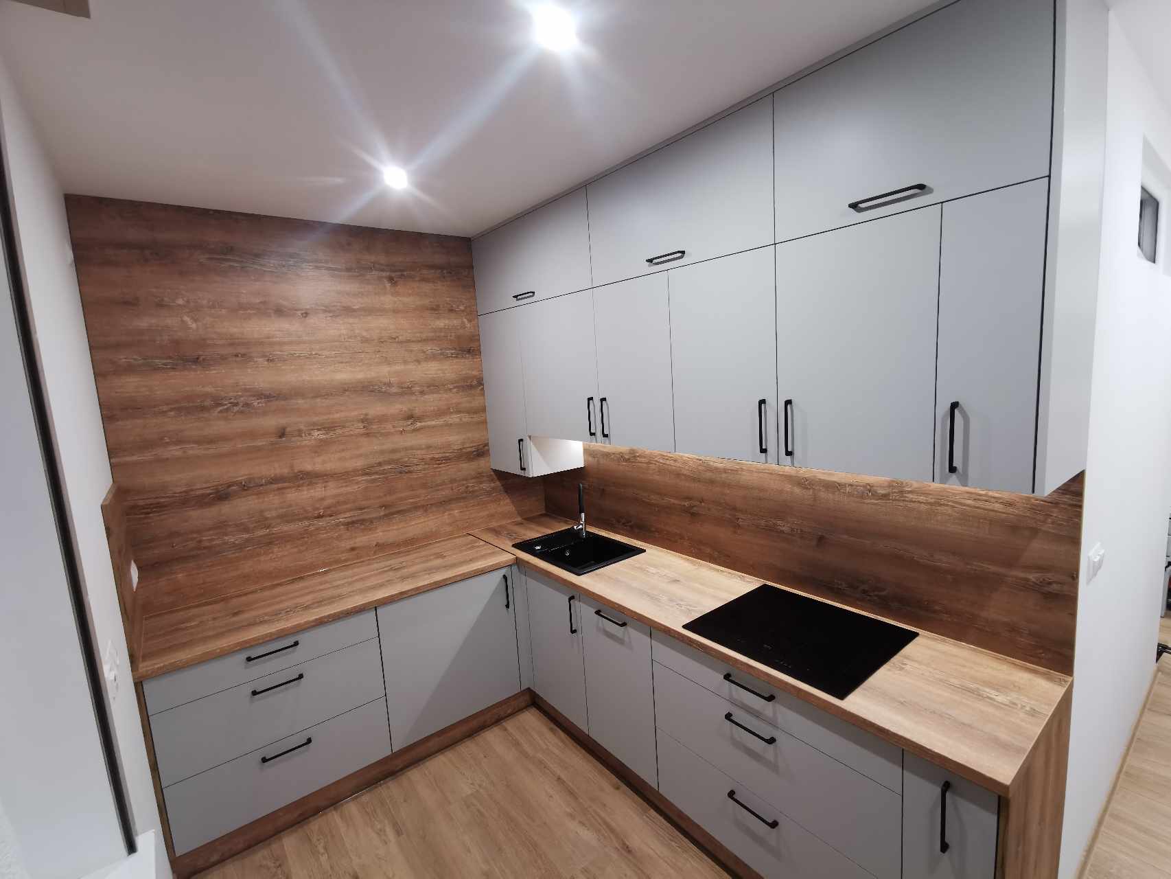 Kolejnym kluczowym elementem projektowania mebli na wymiar jest wybór jasnego drewnianego blatu. Dębowe, bukowe czy jesionowe blaty nie tylko dodają naturalności, ale także wprowadzają do wnętrza ciepło i przytulność. Kontrast między białymi frontami a jasnym drewnianym blatem tworzy harmonijną równowagę, nadając pomieszczeniu charakteru. Dodatkowym atutem jest trwałość drewna, które jest odpornym na uszkodzenia materiałem, gwarantującym długotrwałe zadowolenie z mebli.